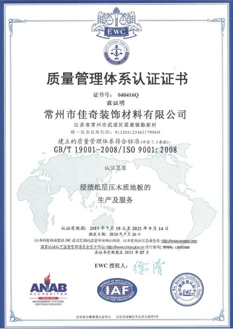 质量管理体系认证证书