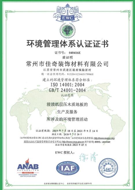 环境管理体系认证证书